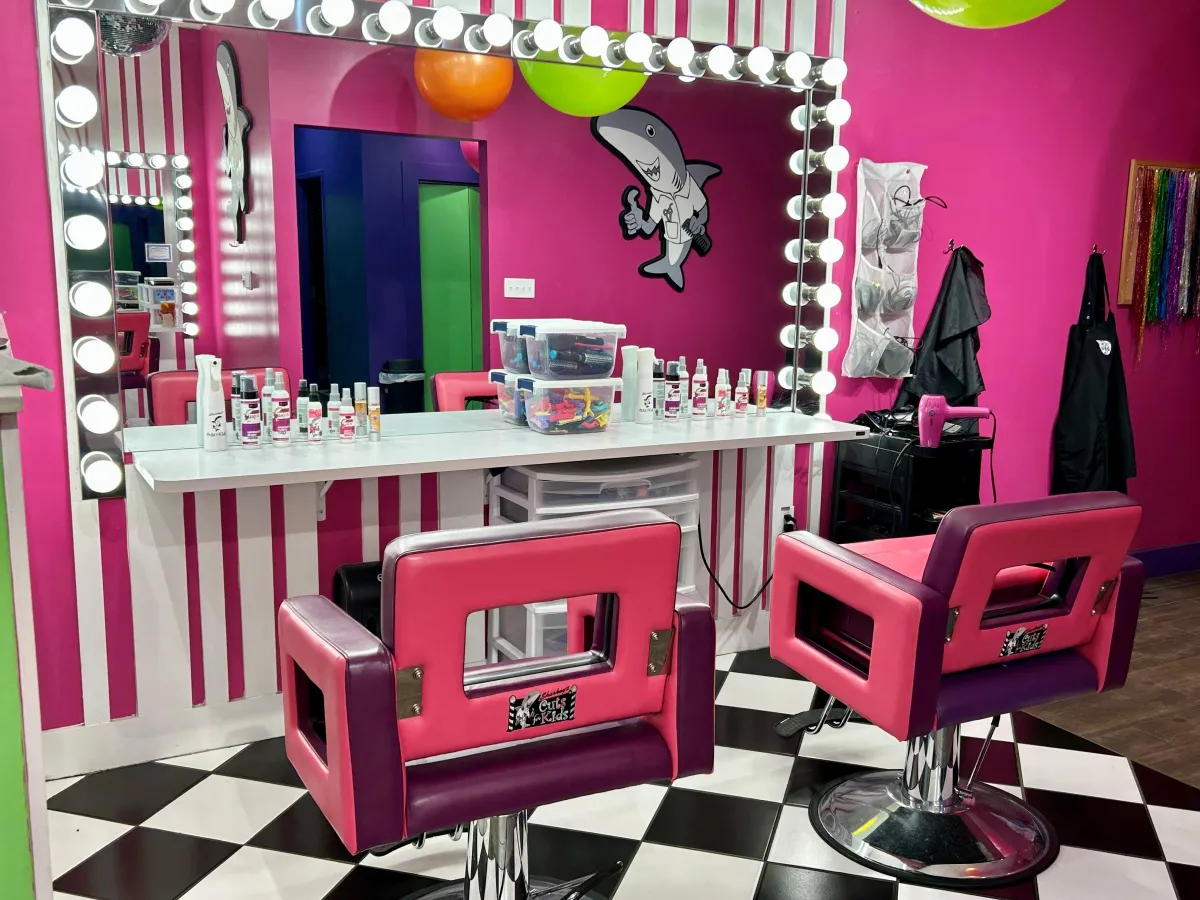 Why should kids have all the fun? Parents can enjoy a haircut or a wash and style in Sharkey’s relaxing, private lounge — the perfect pampering experience!